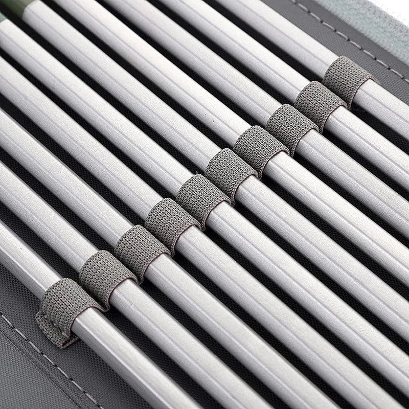 • Cada lápis ou caneta possui um slot individual, mantendo tudo no lugar.