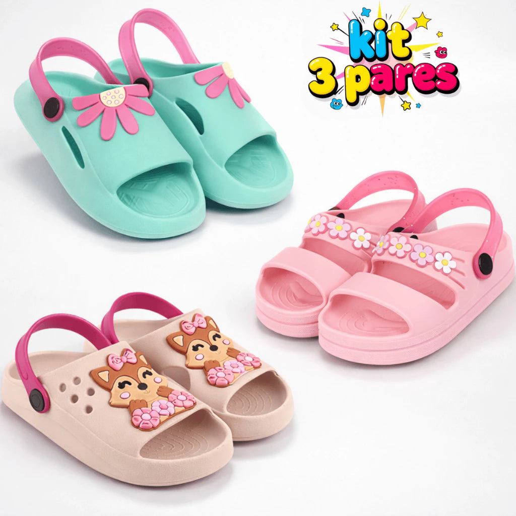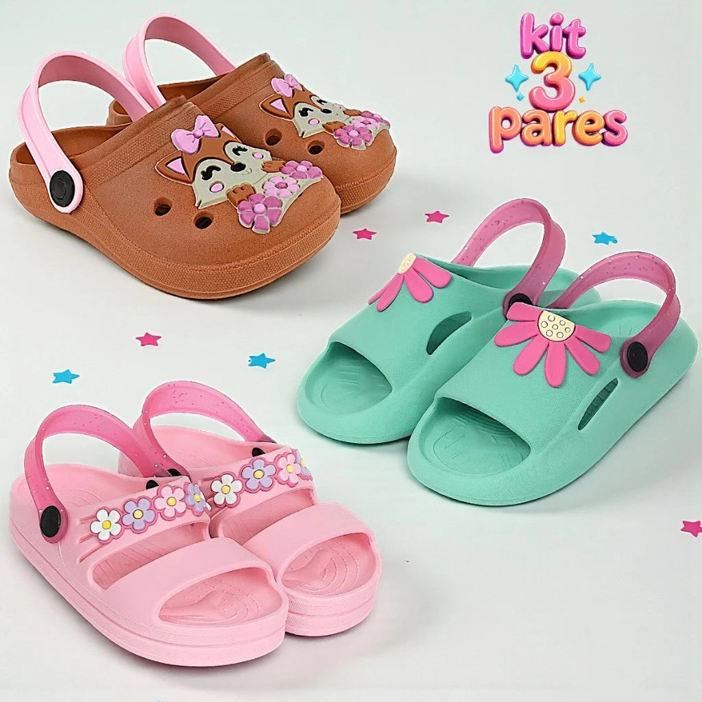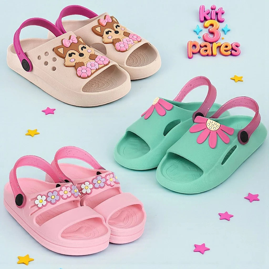 Kit 3 Pares Papete Sandália Infantil Menina