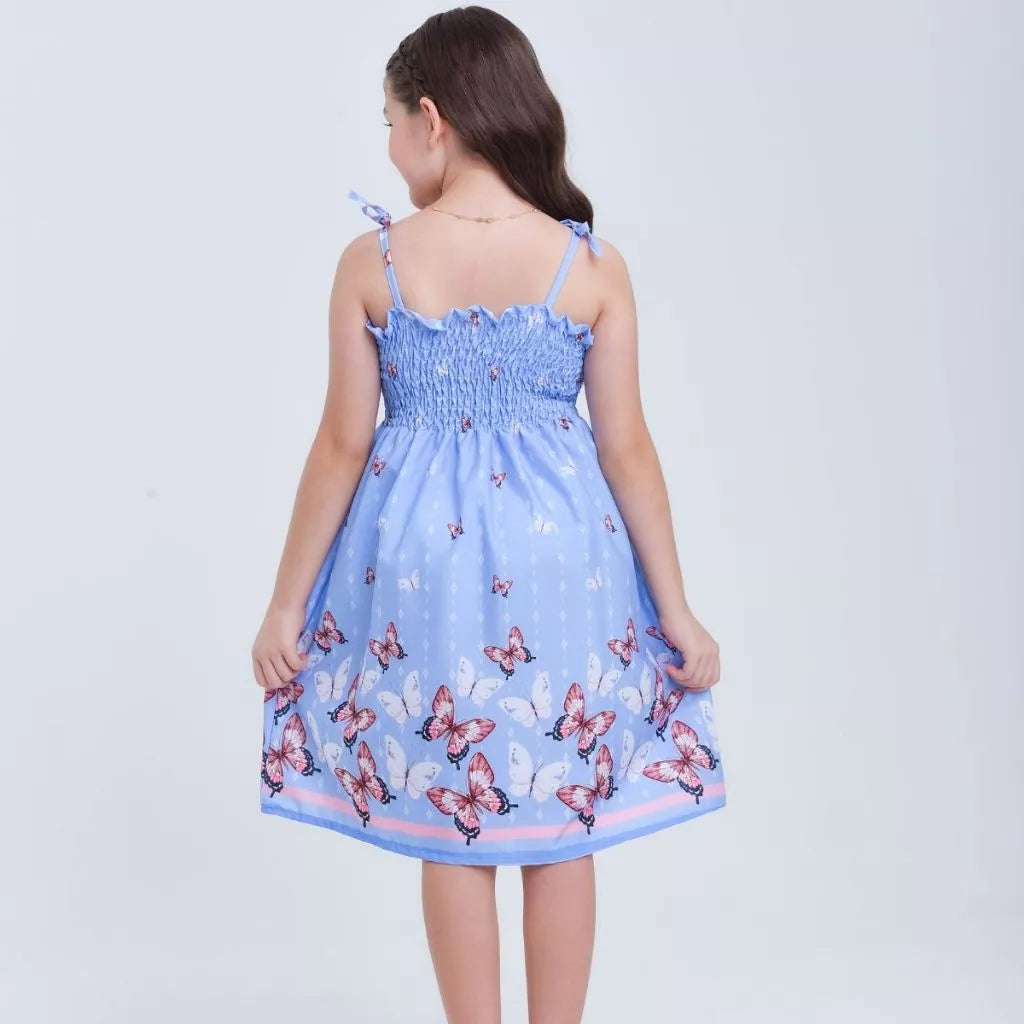 Vestido infantil estampa de Borboletas modelo ciganinha.